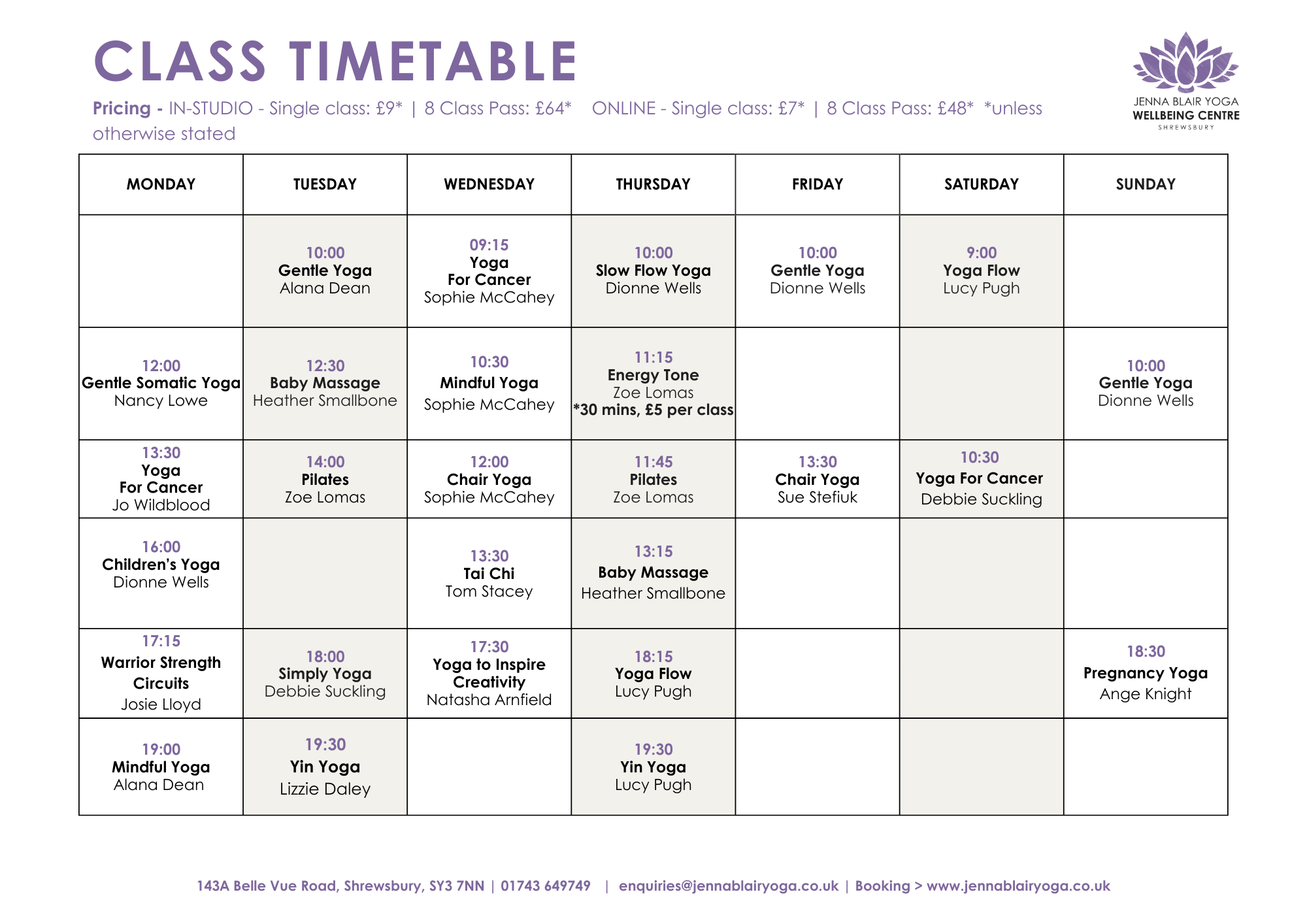 If you are experiencing financial difficulty please contact Jenna direct we will find a way to make sure you can access sessions - 01743 649749 / enquiries@jennablairyoga.co.uk