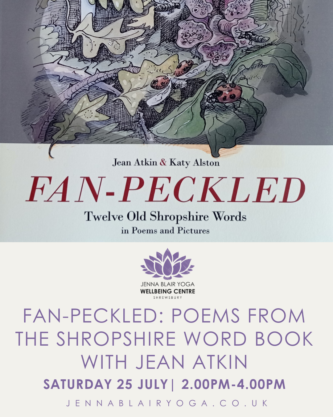 Join poet Jean Atkin for a very local workshop exploring the poetic possibilities of the old dialect words of Shropshire. In 2021 Fair Acre Press of Oswestry published ‘Fan-peckled – Poems and Pictures from Old Shropshire Words’, written by Jean and illustrated by Katy Alston.